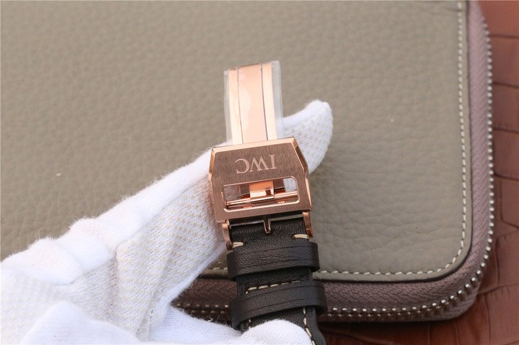 Genuine Black Leather Strap with Steel Clasp complete with IWC markings and Engravings.