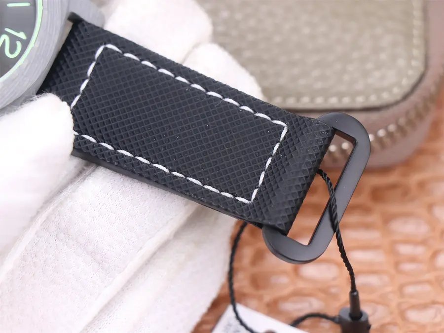 BRACELET ?C Black Panerai Sportech strap with green luminescent stitching and velcro closure.