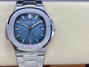 Patek Philippe 5811G Nautilus, matched with SC330, is a 904L stainless steel watch with a Blue dial and a stainless steel bracelet. It has a stainless steel case and a stainless steel bracelet.