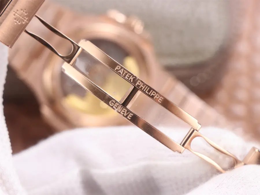 18K Rose Gold wrapped904L Solid Stainless Steel Strap linked with Screws with Folding Patek Philippe Clasp.